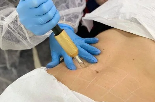 Using a pressurised gun ( Hyluron Pen) the product is delivered into the middle layers of the skin. This is done to promote local circulation, local metabolism and hence it leads to localised fat loss, skin firmness and a substantive reduction of cellulite.